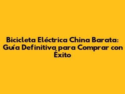 Bicicleta Eléctrica China Barata: Guía Completa Y Consejos
