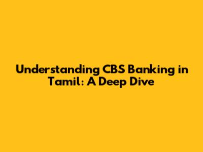 CBS Banking In Tamil: What It Means