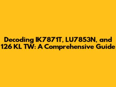 Hey there, tech enthusiasts and curious minds! Ever stumbled upon a string of seemingly random characters and numbers like IK7871T, LU7853N, and 126 KL TW and wondered what they actually mean? Well, you're in the right place! Today, we're diving deep into the world of these cryptic codes, exploring their potential meanings and significance. Get ready to unlock some secrets! Let's get started on the exciting journey of understanding the mysterious world of IK7871T, LU7853N, and 126 KL TW. These seemingly random strings of characters and numbers can often represent various pieces of information, depending on the context in which they are used. Whether it's a product code, a reference number, or a technical specification, each element plays a role in the broader picture. Join us as we explore the diverse possibilities and uncover the hidden meanings behind these intriguing codes. It's like a treasure hunt, but instead of gold, we're after knowledge. The process of deciphering these codes often involves looking at their context. Where did you find them? Are they on a product label, a technical document, or maybe a database entry? The source can provide vital clues about the type of information the code represents. It's also important to consider any patterns or formats the codes might follow. Do certain letters or numbers appear consistently? This could indicate a specific classification or series. Let's delve into the details of each of these codes, exploring their potential uses and meanings. Keep in mind that without more context, it's impossible to provide a definitive answer. Still, we can explore several possibilities and potential interpretations to broaden your understanding. The ability to decode technical information is a valuable skill in various fields, from manufacturing to IT. By learning to decipher these codes, you equip yourself with the tools to navigate complex systems and efficiently retrieve essential information. It's a bit like learning a new language – once you grasp the basics, a whole new world of understanding opens up to you. Let's explore each code individually and examine their potential meanings. Who knows, maybe you will become a code expert by the end of this journey?
