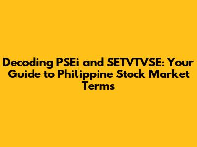 Hey guys! Ever heard of PSEi and SETVTVSE and scratched your head, wondering what in the world they mean? Well, you're not alone. Navigating the world of the Philippine Stock Exchange (PSE) can feel like learning a whole new language. Don't sweat it, though! We're going to break down these terms, PSEi and SETVTVSE, and make them super easy to understand. Think of this as your friendly guide to the basics. By the end of this, you'll be able to chat about the stock market like a pro (or at least, sound like you know what you're talking about!). Let's dive in and demystify these key players in the Philippine stock market.