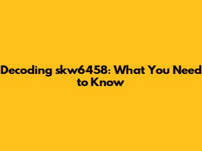 Hey guys! Ever stumbled upon a mysterious code and wondered what it meant? Today, we're diving deep into the enigma of skw6458. This alphanumeric string might seem like gibberish at first glance, but trust me, there's usually more than meets the eye. Whether it's a product identifier, a serial number, a reference code, or something else entirely, understanding what skw6458 represents can be super useful. So, buckle up as we explore all the possible angles and get to the bottom of this!