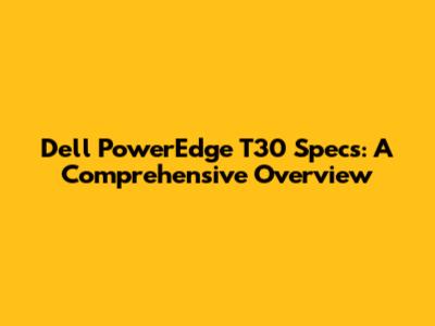 Dell PowerEdge T30 Specs: A Comprehensive Overview