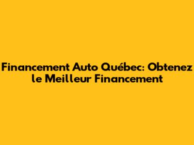 Financement Auto Québec: Obtenez Le Meilleur Financement