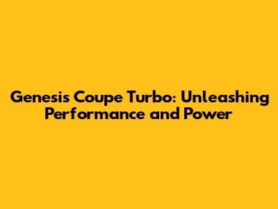 Genesis Coupe Turbo: A Deep Dive Into Performance