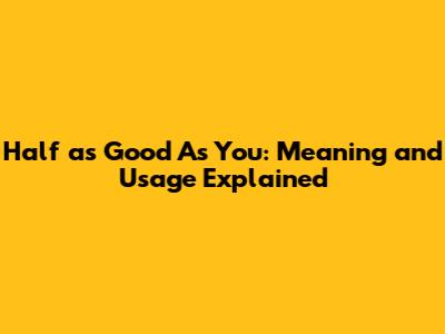 Hey guys! Ever heard someone say "half as good as you" and wondered what they really meant? Let's break it down. This phrase is a common idiom used to express that someone or something is significantly inferior to another. It's a way of saying, "You're way better!" or "This isn't even close to being as good as what you do." The phrase emphasizes a stark contrast in quality, skill, or value. When someone uses this expression, they're not just saying something is bad; they're highlighting a large gap in comparison to something else they hold in high regard, which is often you. The implication is that the subject being compared falls far short of the speaker's expectations or standards, particularly when those standards are set by the person being addressed. In essence, it’s a compliment wrapped in a comparison, designed to boost your ego while subtly putting something else down. Consider, for example, a scenario where a friend tries a new coffee shop and remarks, "This coffee isn't even half as good as yours!" They’re not merely stating the coffee is bad; they’re emphasizing the superiority of your coffee-making skills, possibly implying that your homemade brew sets a very high bar. The phrase can also be used humorously, especially when the difference in quality is obvious or exaggerated for comedic effect. Think of a cooking show where a contestant's dish is so disastrous that a judge exclaims, "This isn't half as good as what I feed my dog!" It’s a lighthearted way to express severe disappointment, making it clear that the dish is nowhere near acceptable. Therefore, the phrase serves not only as a descriptor of quality but also as a tool for social interaction, capable of conveying admiration, humor, and even gentle critique depending on the context. When navigating conversations where this phrase is used, understanding its nuances can help you appreciate the compliment or navigate the implied criticism with grace and humor.