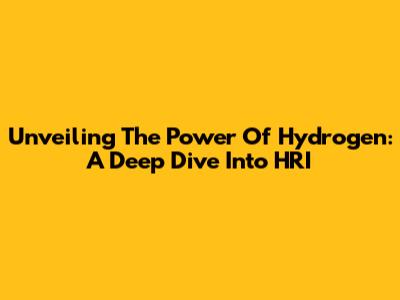 Unveiling The Power Of Hydrogen: A Deep Dive Into HRI