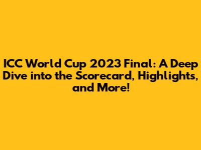 Hey cricket fans! The ICC World Cup 2023 final was a nail-biter, wasn't it? Whether you were glued to your TV, huddled around a radio, or frantically refreshing your phone, the tension was palpable. This article is your ultimate guide to everything you need to know about that epic match. We'll break down the ICC World Cup 2023 final scorecard, the key moments, the heroes, and the controversies. So, grab a snack, settle in, and let's relive the drama! This recap focuses on the cricket world cup 2023 scorecard, giving you all the details you need to understand the game completely. We'll be looking into the batting and bowling stats, crucial partnerships, and how the game unfolded. It's more than just numbers; it's a story of skill, strategy, and sheer determination. Let's get started, shall we?