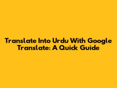 Translate Into Urdu With Google Translate: A Quick Guide