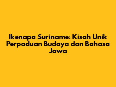 Ikenapa Suriname: Perpaduan Budaya & Bahasa Jawa Yang Unik