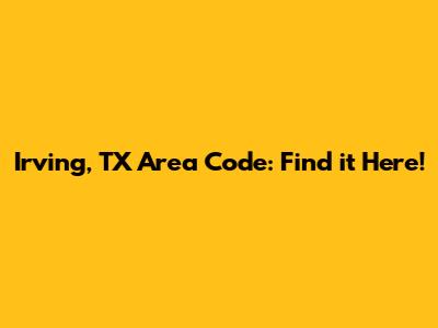 Hey guys! Ever wondered about the area code for Irving, Texas? Knowing your area codes is super important these days. Whether you're trying to call your favorite pizza joint, setting up a new business line, or just plain curious, we've got you covered. Let's dive into everything you need to know about the Irving, Texas area code!
