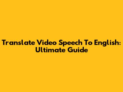 Translate Video Speech To English: Ultimate Guide