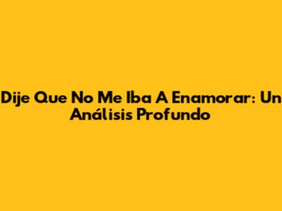 Dije Que No Me Iba A Enamorar: Un Análisis Profundo