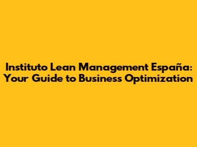 Lean Management Institute Spain: Boost Your Business!