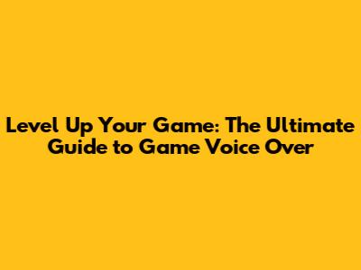 Diving into the World of Game Voice Over