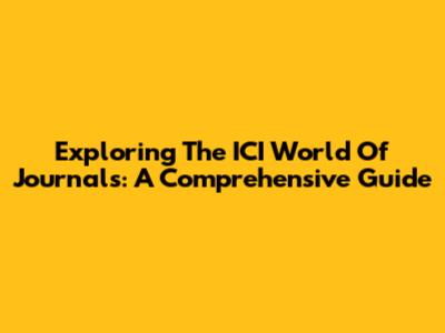 Exploring The ICI World Of Journals: A Comprehensive Guide