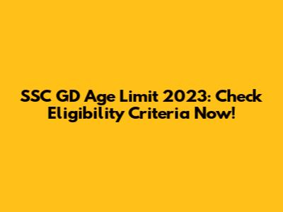 SSC GD Age Limit 2023: Check Eligibility Criteria Now!
