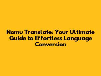Hey everyone, let's dive into the world of Nomu Translate! If you've ever found yourself staring at a foreign language and wishing for a magic button to instantly understand it, then you're in the right place, guys. This article is your comprehensive guide to everything you need to know about Nomu Translate, a powerful tool designed to make language conversion a breeze. We'll cover what it is, how it works, why it's awesome, and how you can get started. So, buckle up; we're about to embark on a journey that will transform the way you interact with different languages.