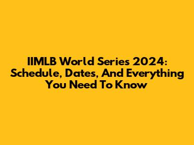 IIMLB World Series 2024: Schedule, Dates, And Everything You Need To Know
