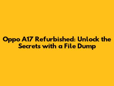 Oppo A17 Refurbished: Unlock The Secrets With A File Dump