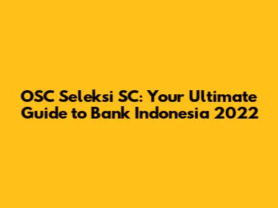Hey everyone! 👋 If you're here, chances are you're gearing up for the OSC Seleksi SC (Selection for Supervisory Staff) at Bank Indonesia in 2022. This is a big deal, and I know the whole process can seem a bit daunting. But don't worry, I've got you covered! Think of this as your one-stop shop for everything you need to know about the OSC Seleksi SC. We'll break down the whole process, from understanding what the OSC is all about to acing those crucial exams and interviews. So, grab your coffee ☕, settle in, and let's dive into the world of Bank Indonesia's OSC Seleksi SC!