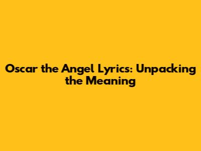 Oscar The Angel Lyrics: Unpacking The Meaning
