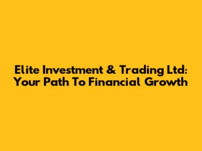 Elite Investment & Trading Ltd: Your Path To Financial Growth