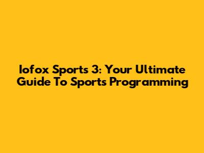 Iofox Sports 3: Your Ultimate Guide To Sports Programming