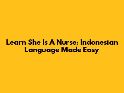 Learn 'She Is A Nurse': Indonesian Language Made Easy
