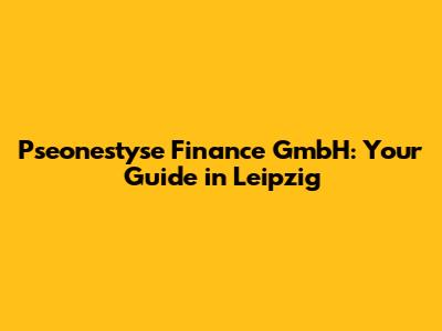 Pseonestyse Finance GmbH: Your Guide In Leipzig