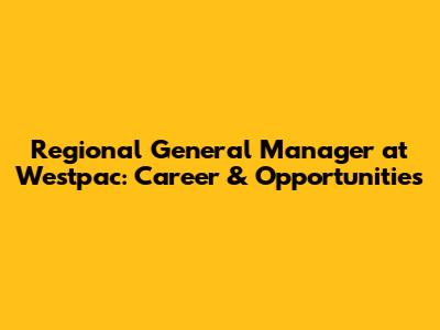 Regional General Manager At Westpac: Career & Opportunities