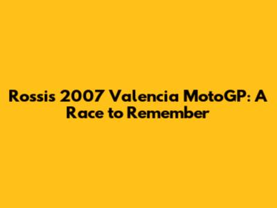 The 2007 Valencia MotoGP is just one chapter in Rossi's extraordinary career. It is a race that encapsulates the challenges, triumphs, and lessons that have shaped his journey. As fans reflect on his legacy, they will remember the 2007 Valencia race as a testament to his unwavering spirit and his enduring love for motorcycle racing.