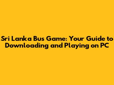 Sri Lanka Bus Game: Download & Play On PC
