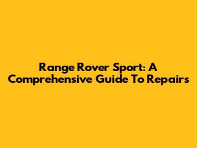 Range Rover Sport: A Comprehensive Guide To Repairs
