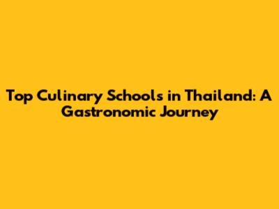 Top Culinary Schools in Thailand: A Detailed Look