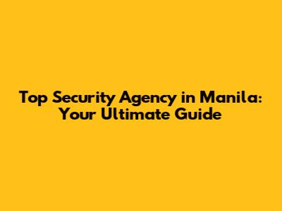 Top Security Agencies in Manila