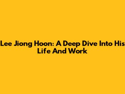 Lee Jiong Hoon: A Deep Dive Into His Life And Work