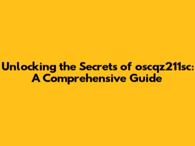 What Exactly is oscqz211sc? Demystifying the Term