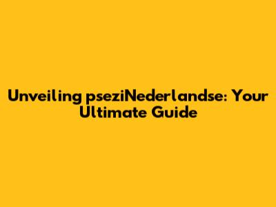 Hey everyone! Ever heard of pseziNederlandse? If you're scratching your head, no worries! We're diving deep into everything you need to know about this fascinating topic. This comprehensive guide will break down the what, why, and how of pseziNederlandse, making it super easy to understand. So, grab a coffee, sit back, and get ready to become an expert on this intriguing subject. We'll explore its origins, its impact, and its future. Ready to unlock the secrets? Let's go!
