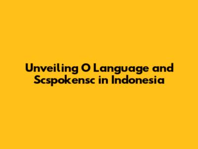 Unveiling O Language And Scspokensc In Indonesia
