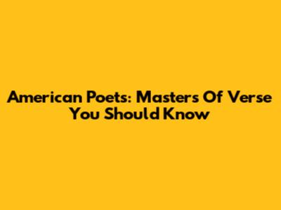 American Poets: Masters Of Verse You Should Know